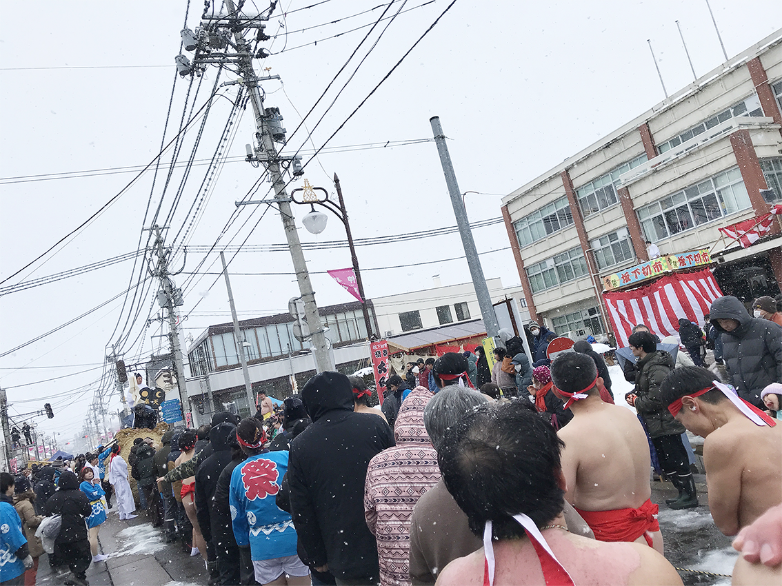 雪が降る中、県内外から沢山の人が参加して熱気に包まれてるクマ。