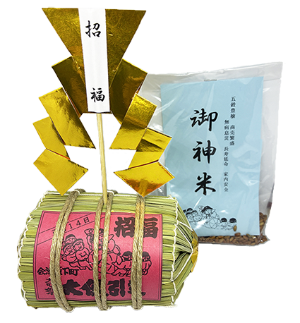 ▲縁起物のミニ副大俵と御神米